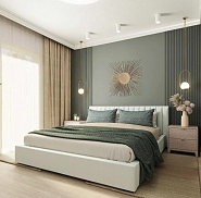 • Акцентный свет – LED-лента за изголовьем, подсветка текстурных стен.